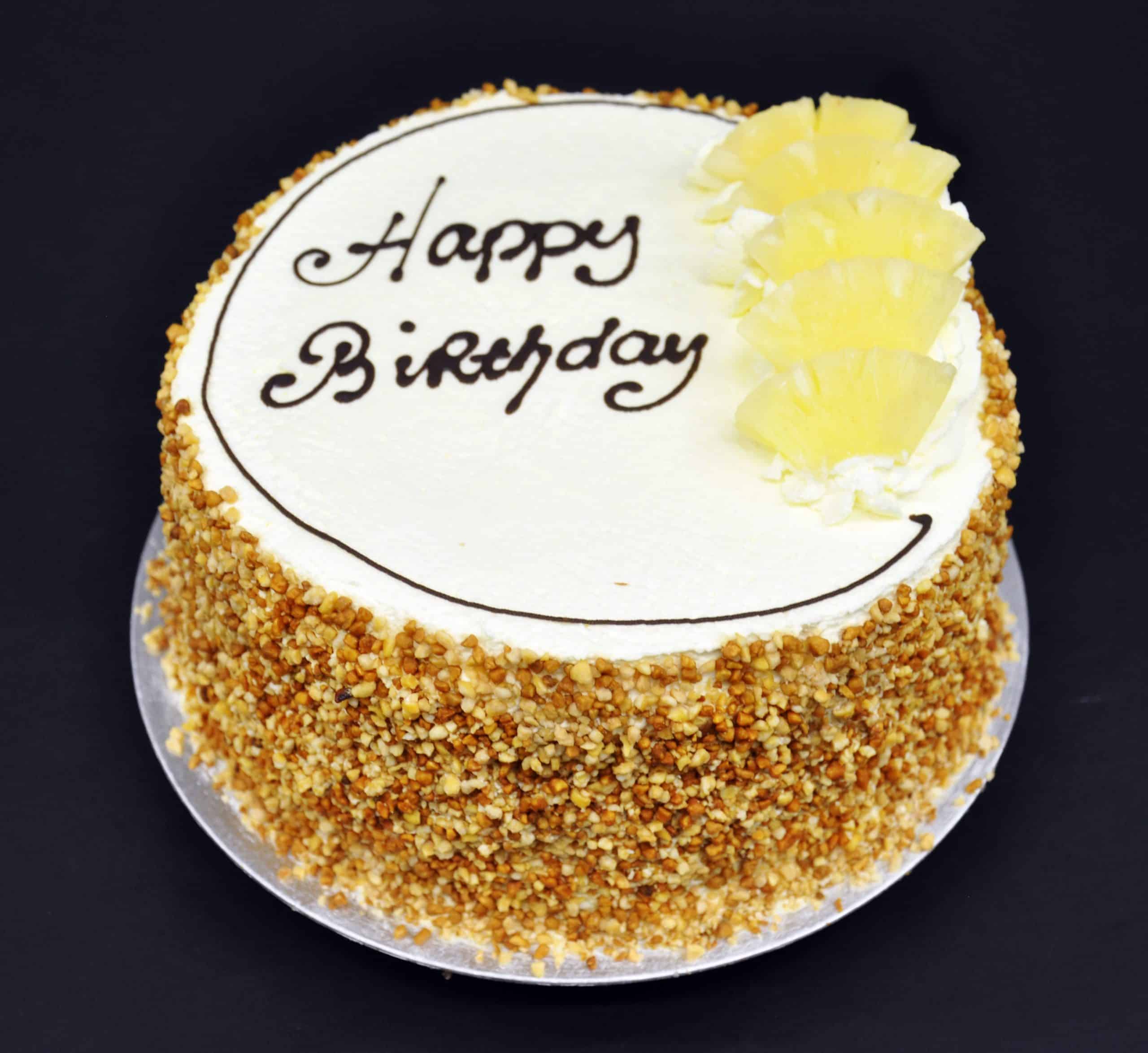 Delicious and light vanilla sponge layered with fresh Irish cream & pineapple.